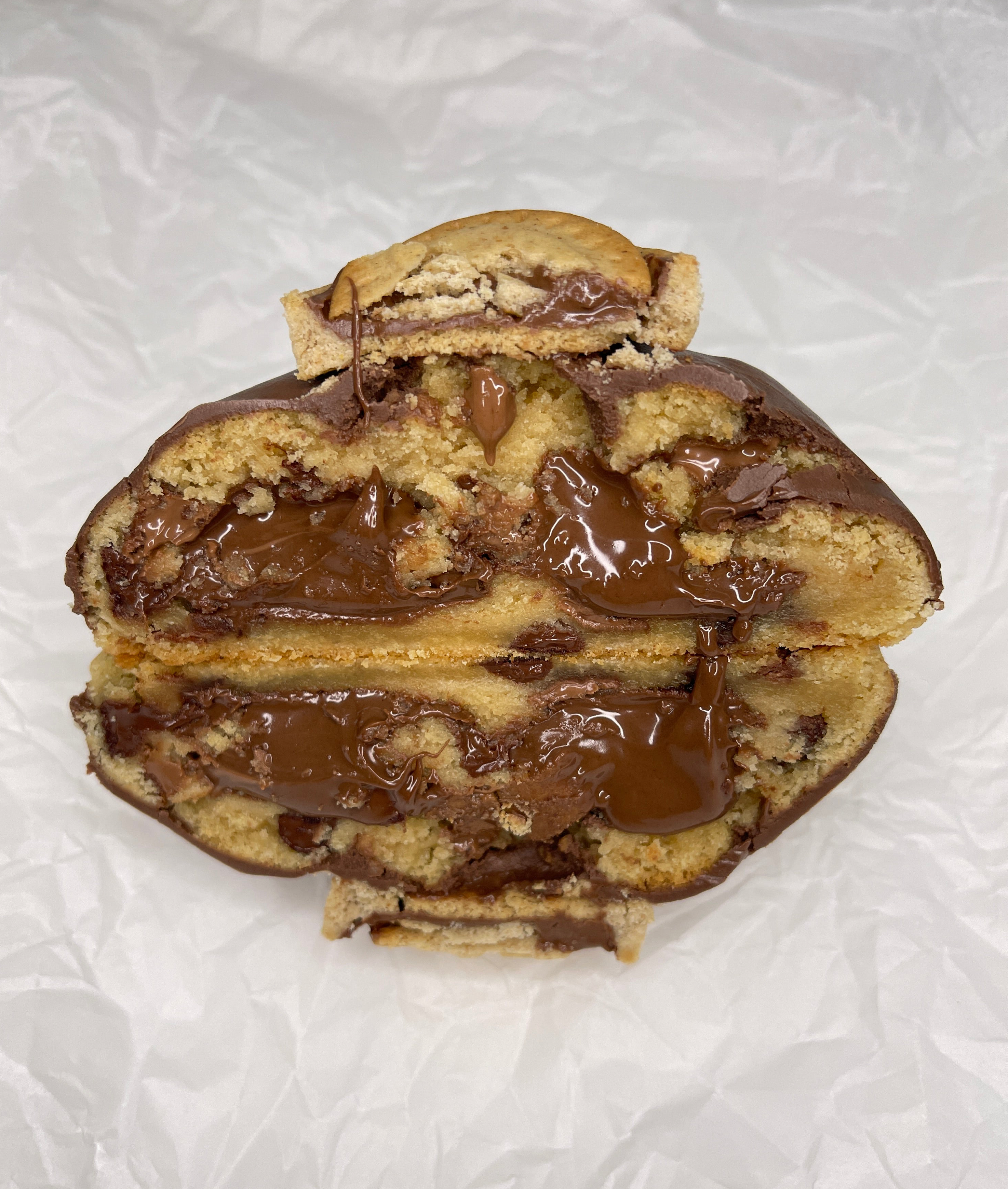 Treat yourself with a soft, buttery vanilla cookie with a creamy Nutella center and semi-sweet chocolate chips. Every bite melts in your mouth, delivering the perfect balance of chocolatey goodness and hazelnut delight. Perfect for a sweet treat anytime!