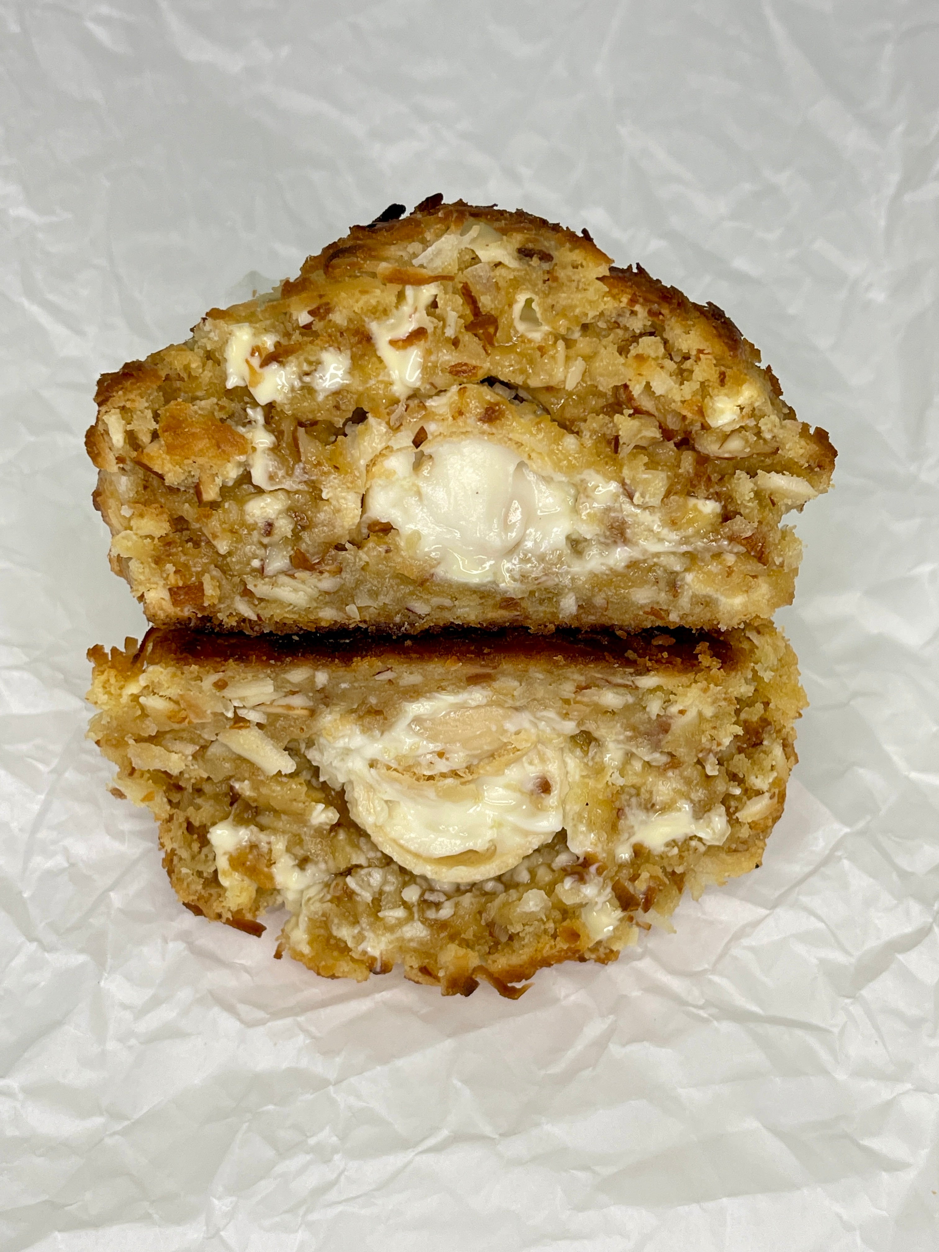 A heavenly bite of shredded coconut, creamy Callebaut white chocolate, and a whole Raffaello® at the center. Crispy edges, soft center, and pure joy in every bite your ultimate coconut-chocolate dream.