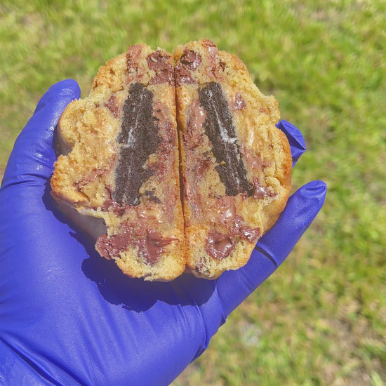 A chewy cookie loaded with Reese’s pieces and chocolate chips, stuffed with an Oreo center for the ultimate flavor smash.
